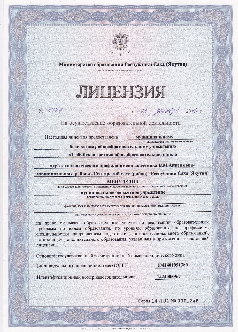 Республика Саха (Якутия), Сунтарский улус, с.Тюбяй, ул.Школьная 1